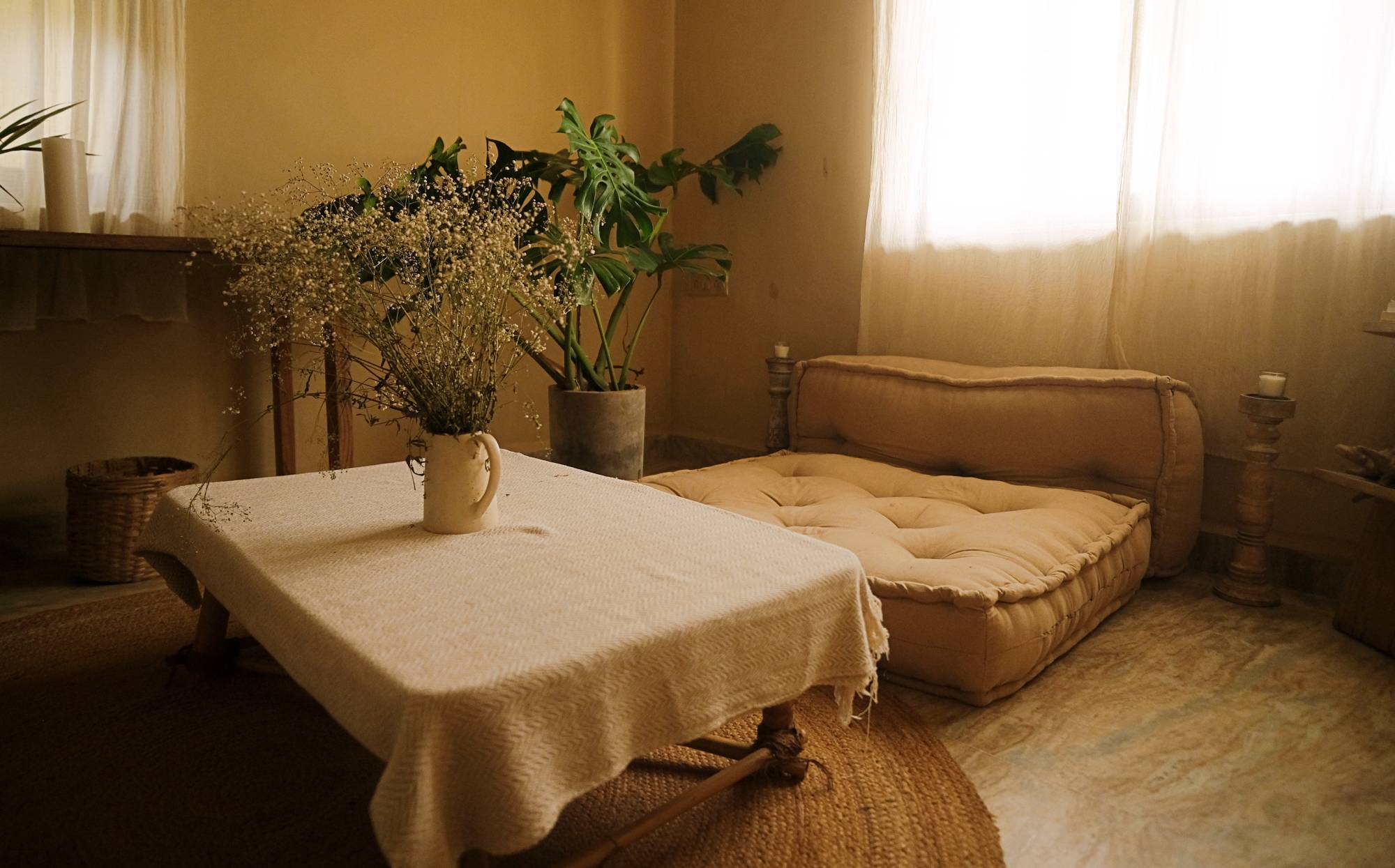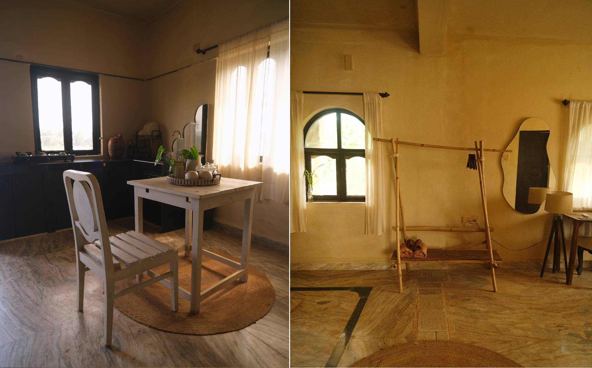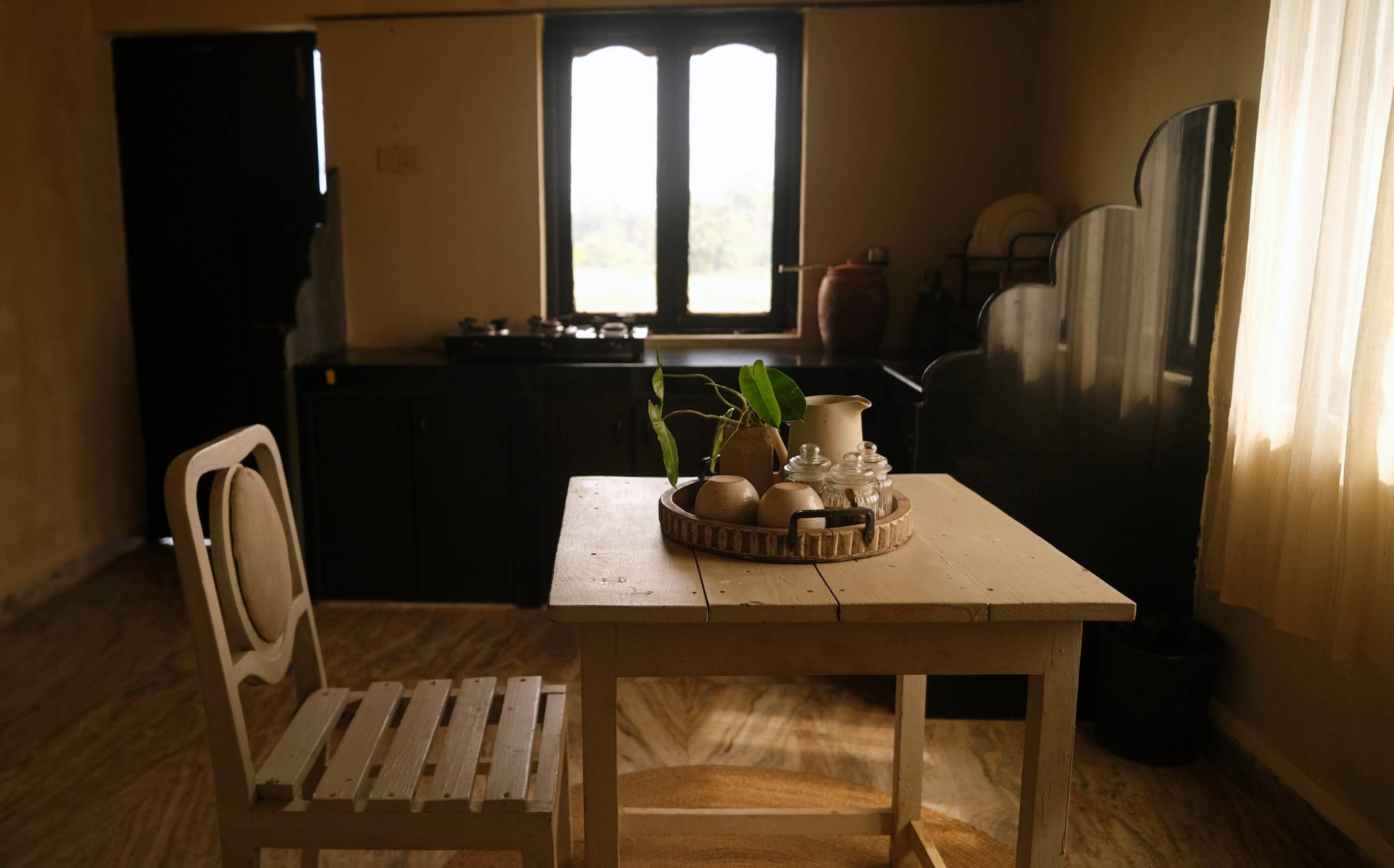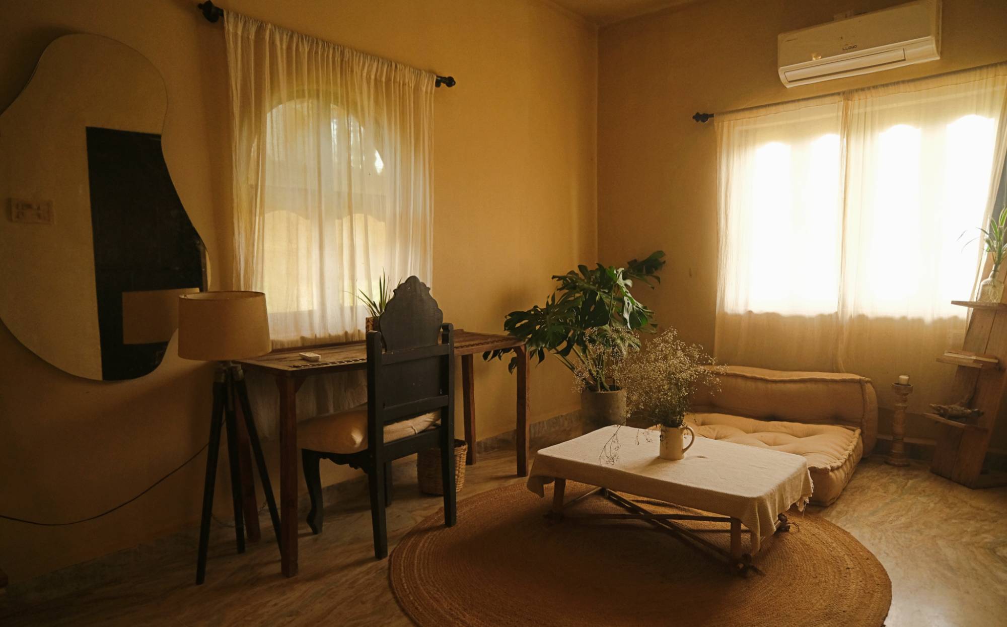 Sunrise is a cozy one-bedroom unit with a kitchen, perfect for solo travelers or couples seeking a peaceful retreat. Designed with a warm and inviting ambiance, it offers a comfortable stay with modern amenities, allowing guests to relax and enjoy the serene surroundings of Mandrem.